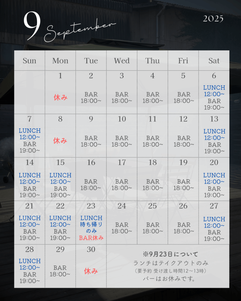 【バータイムのみの営業日】